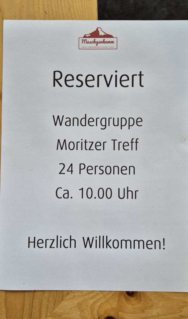 Eine negative Überraschung erleben die 21 Wanderfreudigen welche sich in Berikon-Widen treffen und die vier welche sich im Hofacker und in Zürich HB dazugesellen gleich frühmorgens: „Die Gondelbahn vom Tannenboden zum Maschgenkamm gehört nicht zum GA-Bereich.“ Also gibt es dafür kein Gruppenbillett. Folglich wird die Sache teurer als angekündigt und umständlicher erst auch noch. Weil sich die Kasse im Nebengebäude der Talstation befindet und die brave Frau dahinter alle Halbtaxabos und GAs sehen will, machen wir eine Ehrenrunde von der Einstiegsplattform zum Schalter und zurück. Dafür hat jetzt jede und jeder zwei gültige Gondelbahntickets, die man dann bei der Talfahrt nach Unterterzen verwechseln kann und dann dreht sich die Schranke einfach nicht! Komisch, warum nicht?! Bei wem? Darüber schweigt des Sängers Höflichkeit.