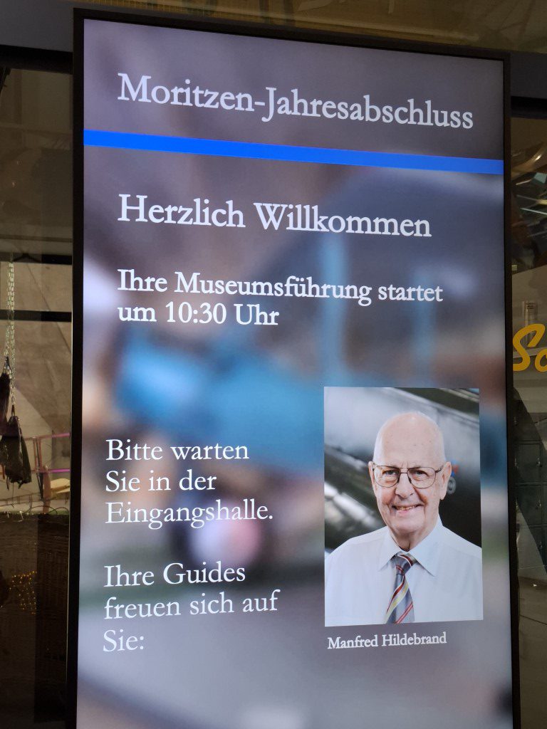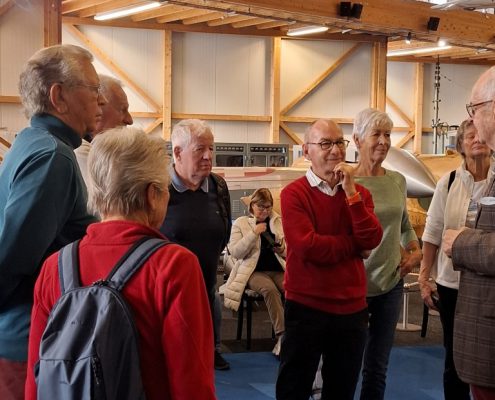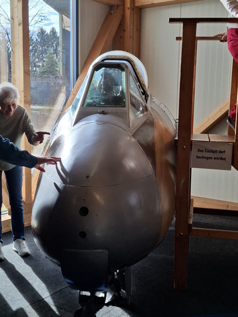 Pünktlich um 08:44 Uhr startete unsere Mission «Jahresabschluss 2025» mit 22 Moritzen mit der BDB in Richtung Dübendorf. Nach einer unspektakulären Bahnreise erreichten wir Dübendorf um 20 Minuten vor 10Uhr. Nach einem kurzen Spaziergang erreichten wir das Museum. Dort erwarteten uns Margrit und Hanspeter sehnlichst. Somit war die Reisegruppe mit 24 Moritzen vollständig. Begrüsst wurden wir von unseren zwei Guides Manfred Hildebrand und Mark Salathe und das bei sonnigem Wetter, waren wir doch die grauen Nebeltage schon gewohnt. Speziell war, dass sich der Guide Manfred Hildebrand und Hanspeter schon viele Jahre vom Militär her kannten.