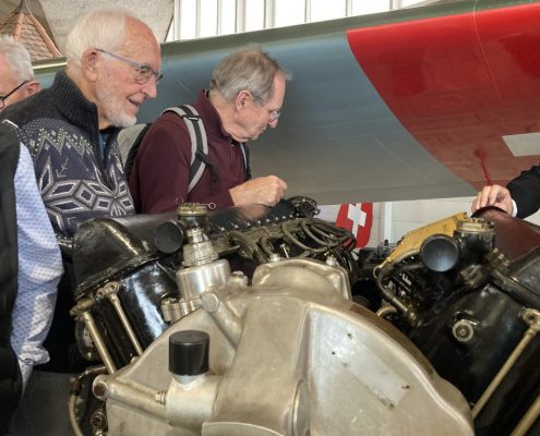 Beide Guides haben uns in eine interessante Zeitreise über die Aviatik allgemein und über die schweizerischen Aviatik Aktivitäten militärisch wie auch zivil mitgenommen. Wir erfuhren viel Neues und auch Insider Informationen, wie wirklich spannend waren. Unsere Guides haben auch uns aktiv in die Präsentationen einbezogen, indem sie uns anhand Beispielen die Grundsätze der Aviatik erklärten, wie z.B. die Auftriebskraft mit einem Blatt Papier vorführten. Man spürte ihr Engagement für die Aviatik und für das Museum. Der 90-minütige Rundgang durch das Museum war wirklich ein richtiges Highlight.
