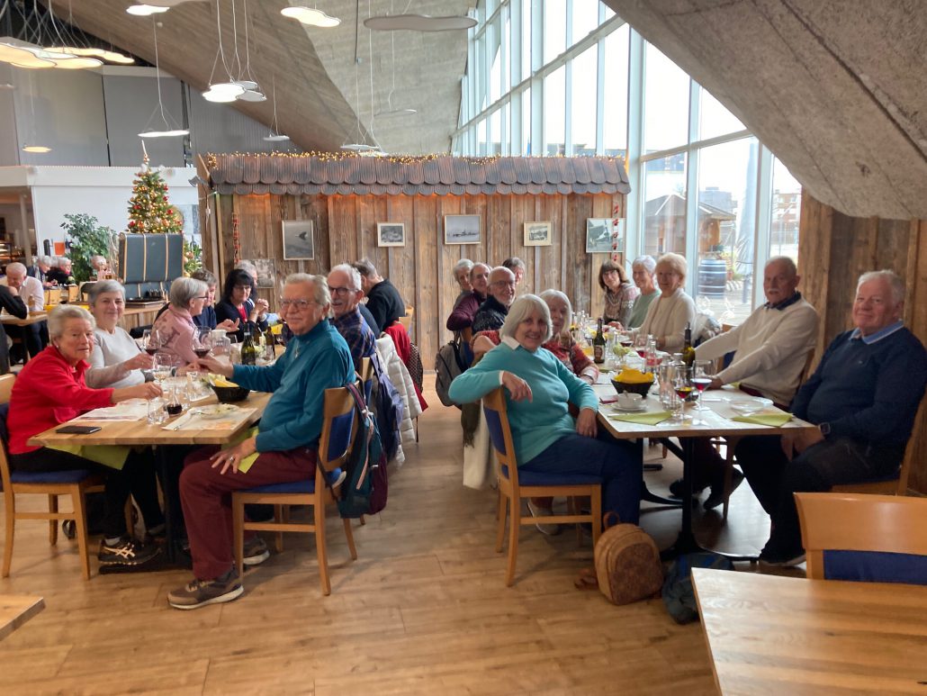 Nach dem sehr guten Mittagsmenu stand nun der eigentliche Jahresabschluss bevor, mit unseren Präsentationen zu den Themen Rückschau 2025, Vorschau 2026, ein Gedicht von Werni zu den Wünschen an den Samiklaus und als weiteres Highlight Erwin’s Erlebnisse und Erkenntnisse auf dem Jakobsweg. Seine Präsentation war einfach beeindruckend. Danke Erwin, für deine spannenden Ausführungen und die tollen Bilder.