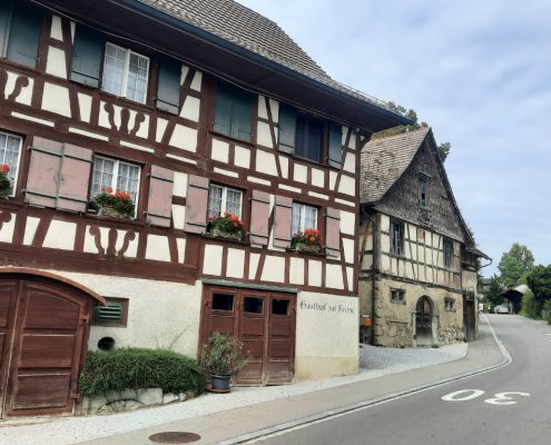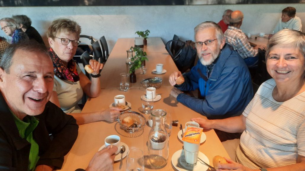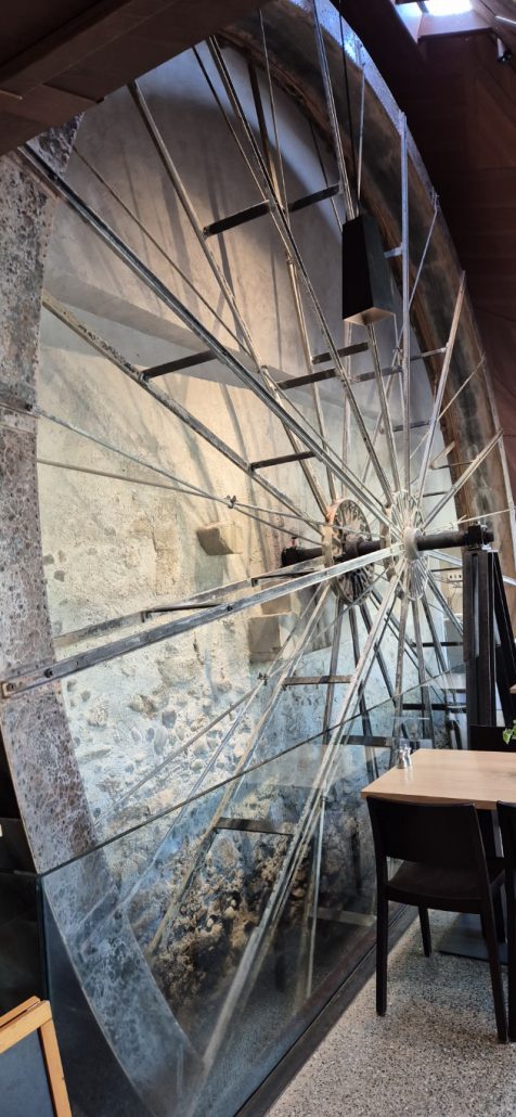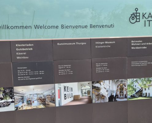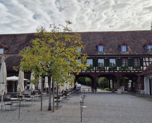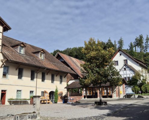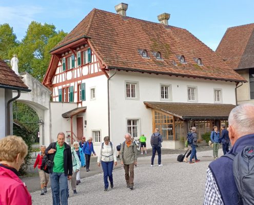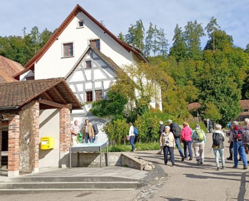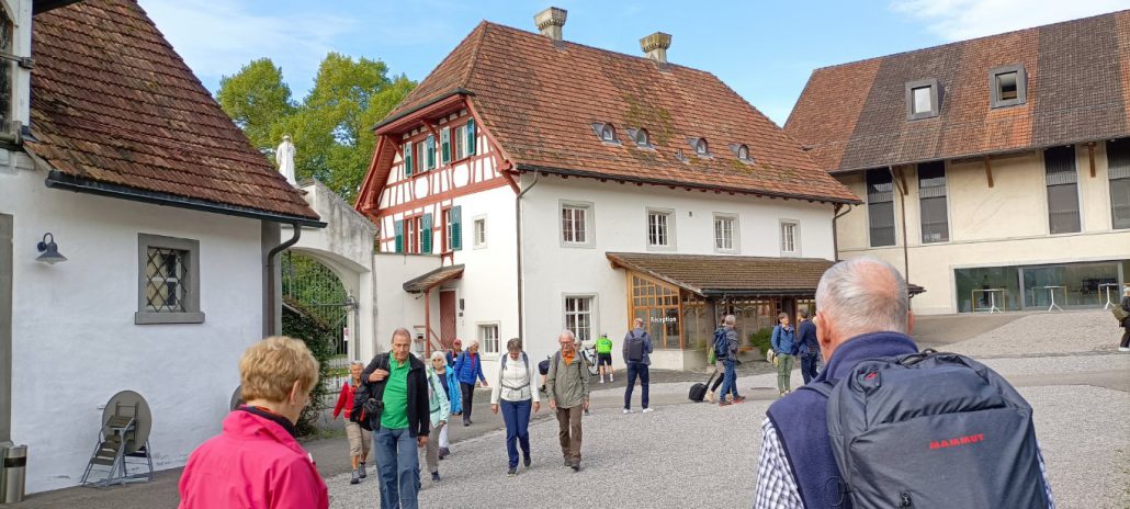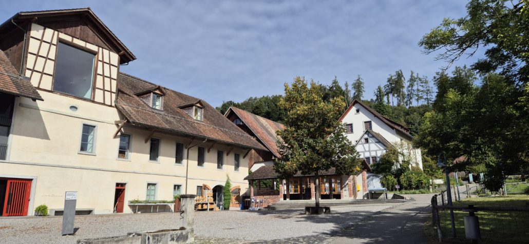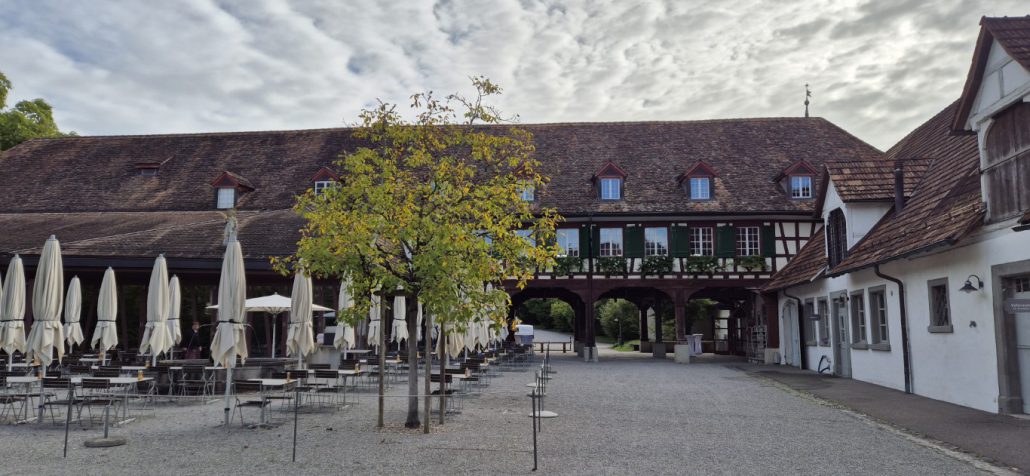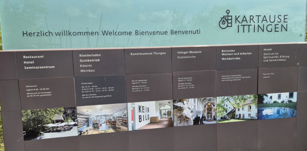 •  erstens die historische Kartause Ittingen, wo wir im Restaurant Mühle, mit einem riesigen Mühlenrad indoor, für zehn Franken unseren Startkaffee und Brötchen à Discrétion geniessen. Das Angebot begeistert. Nebst vielem, was zur Kartause kulturell zu erzählen ist- leider fehlt uns die Zeit für eine ausführliche Führung – gibt es auch eine Besonderheit: Am 4. September 1912 besuchte der deutsche Kaiser Wilhelm II Ittingen, damals in Privatbesitz. Für die kaiserliche Bequemlichkeit baute der Gastgeber die erste Wassertoilette mit Spülvorrichtung ein, was zu dieser Zeit in der Schweiz noch eine Seltenheit war.